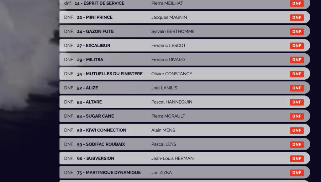 Out of approximately 53 starters in the proto class alone, a significant number did not finish (DNF), with attrition rates reflecting the chaos. The event underscored the vulnerabilities of mini yachts in open ocean storms, where even well-prepared entrants could be overwhelmed by nature’s force.